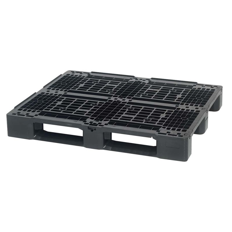 Ta średniej wagi paleta posiada 3 lub 5 płoz, jest paletą jednoczęściową, formowaną, przystosowaną do składowania na regałach, przyjazną dla przenośników, ekologiczną i przyjazną dla eksportu.