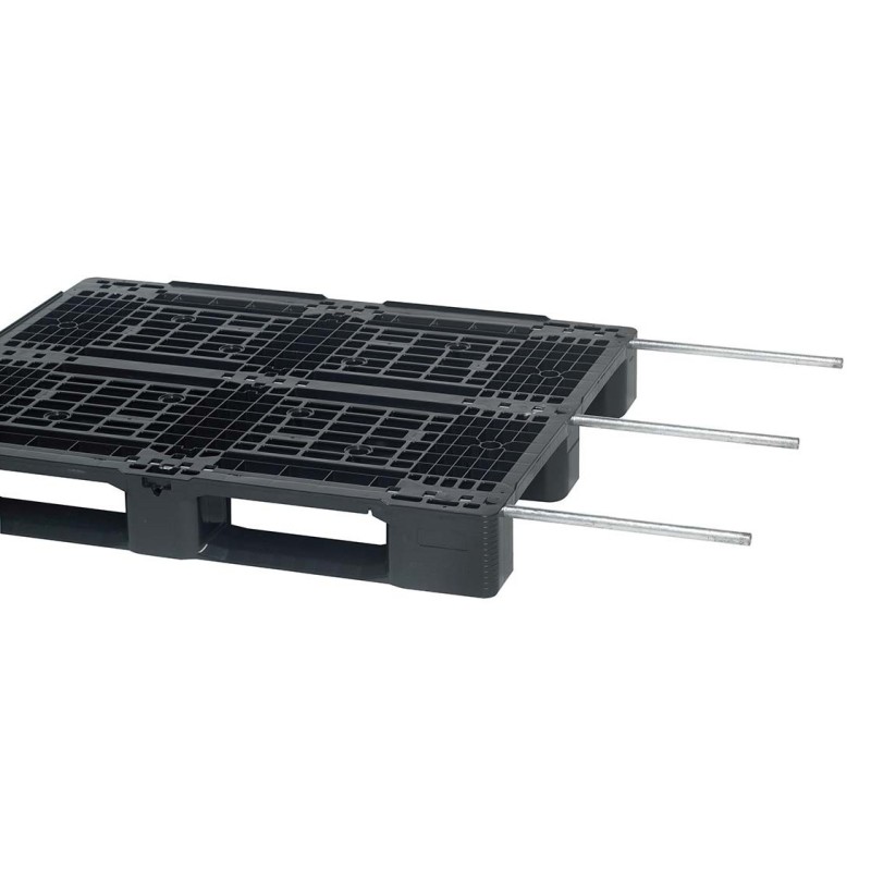 - Jednoczęściowa paleta formowana może być opcjonalnie wzmocniona metalowymi prętami, aby zwiększyć obciążenie regału.