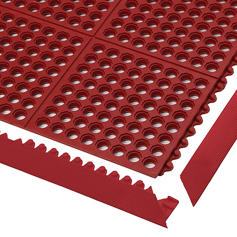 - Modułowe gumowe maty przeciwzmęczeniowe z otworami zapewniają doskonały drenaż i wentylację, pozostawiając suche i czyste miejsce pracy.