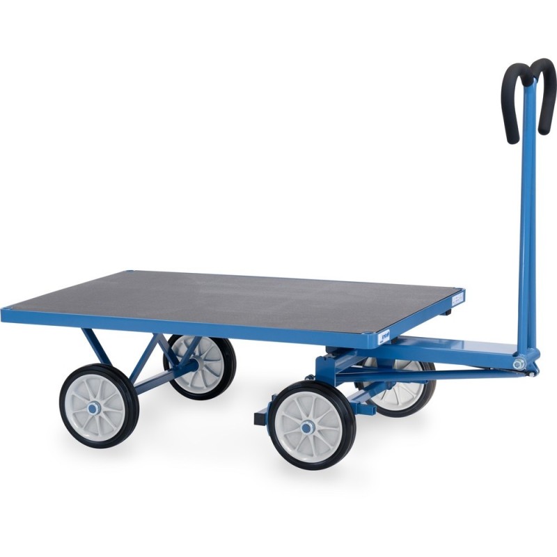 - Obrotowy układ kierowniczy z łożyskiem kulkowym, nożycowy dyszel z uchwytem bezpieczeństwa z miękką powłoką i automatycznym, amortyzowanym powrotem do pozycji spoczynkowej.