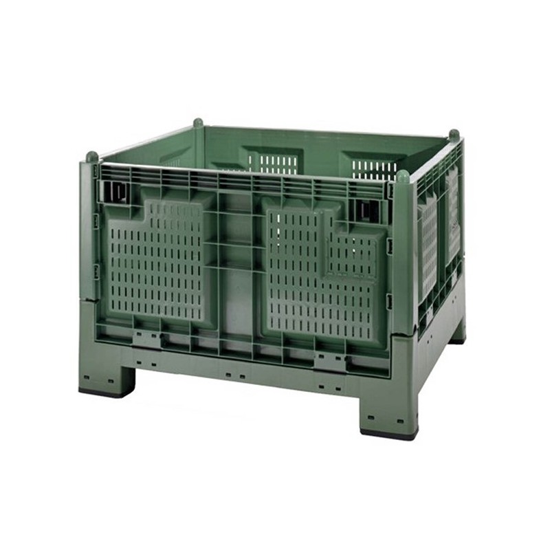 Pierwsza skrzyniopaleta ze składanymi ściankami i dostępna na kółkach, specjalnie dla przemysłu spożywczego, jest całkowicie składana.