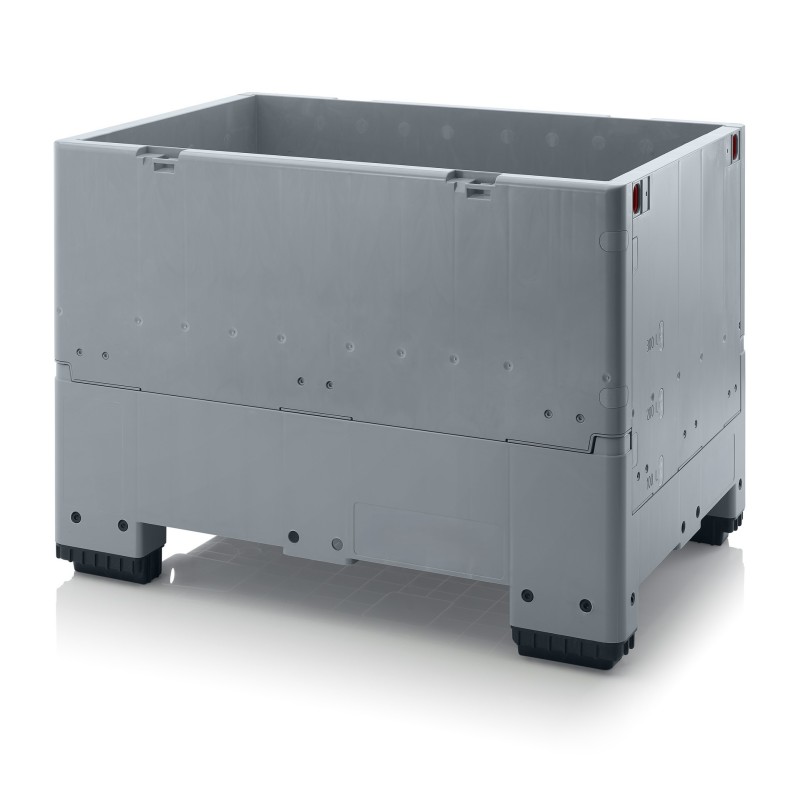 - Na czas transportu wstecznego pozwalającego zaoszczędzić koszty można w prosty sposób złożyć ścianki boczne, a tym samym znacznie zredukować objętość.