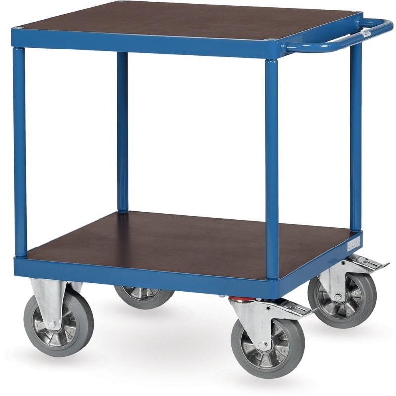 - 2 koła obrotowe z hamulcami i 2 stałe, elastyczne opony z pełnej gumy, niebiesko-szare, niebrudzące, piasty z łożyskami kulkowymi.