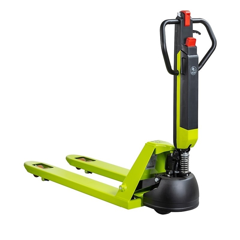 - Innowacyjny zmotoryzowany wózek paletowy, który łączy w sobie funkcję elektryczną i ręczną, zapewniając wygodę użytkowania.